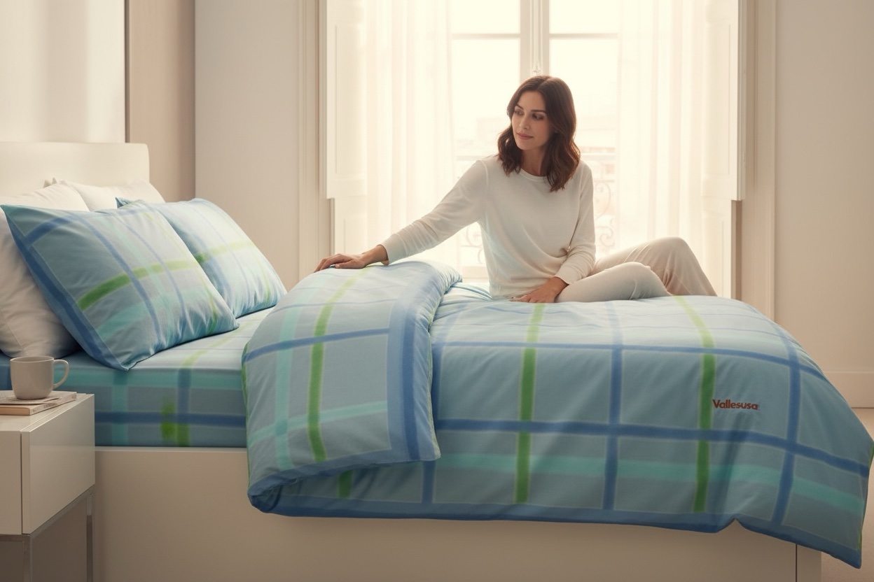 Completo copripiumino 1 piazza e mezza cm 200×205 Vallesusa, modello Star, colore Lago