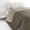 Copriletto Trapuntato Chromo – Il copriletto trapuntato è stampato, con un piccolo motivo che crea un effetto falso unito sia nella versione colori luxury con effetti di stampa metallici, sia nella versione tinta unita basic con una palette che passa dai colori più vivaci e di tendenza a quelli neutri e più classici, su madapolam di puro cotone con imbottitura in morbida fibra anallergica da 80g/mq.ll tessuto resistente, leggero e molto confortevole, è perfetto da abbinare al completo lenzuolo della medesima collezione per un total look e alle lenzuola tinta unita dipiù colore e benessere. Il finissimo e morbido puro cotone di Gabel, leader nella biancheria casa dal 1957, garantisce qualità e resistenza, riconosciuta anche dalla certificazione Oeko-tex.