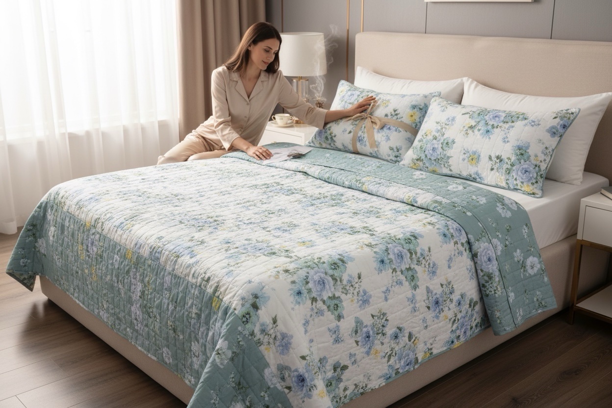 Copriletto trapuntato matrimoniale linea oro
