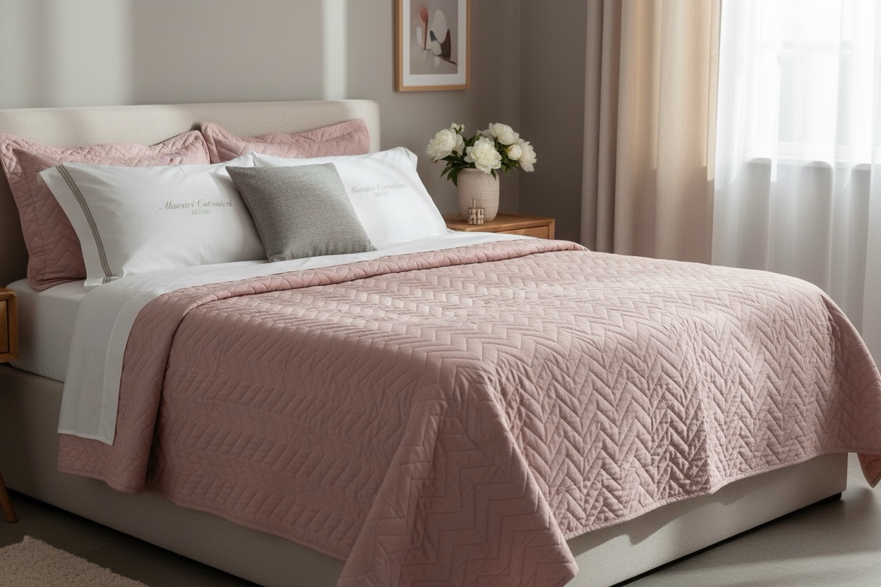 Copriletto trapuntato matrimoniale maestri cotonieri home raso cotone rosa antico