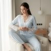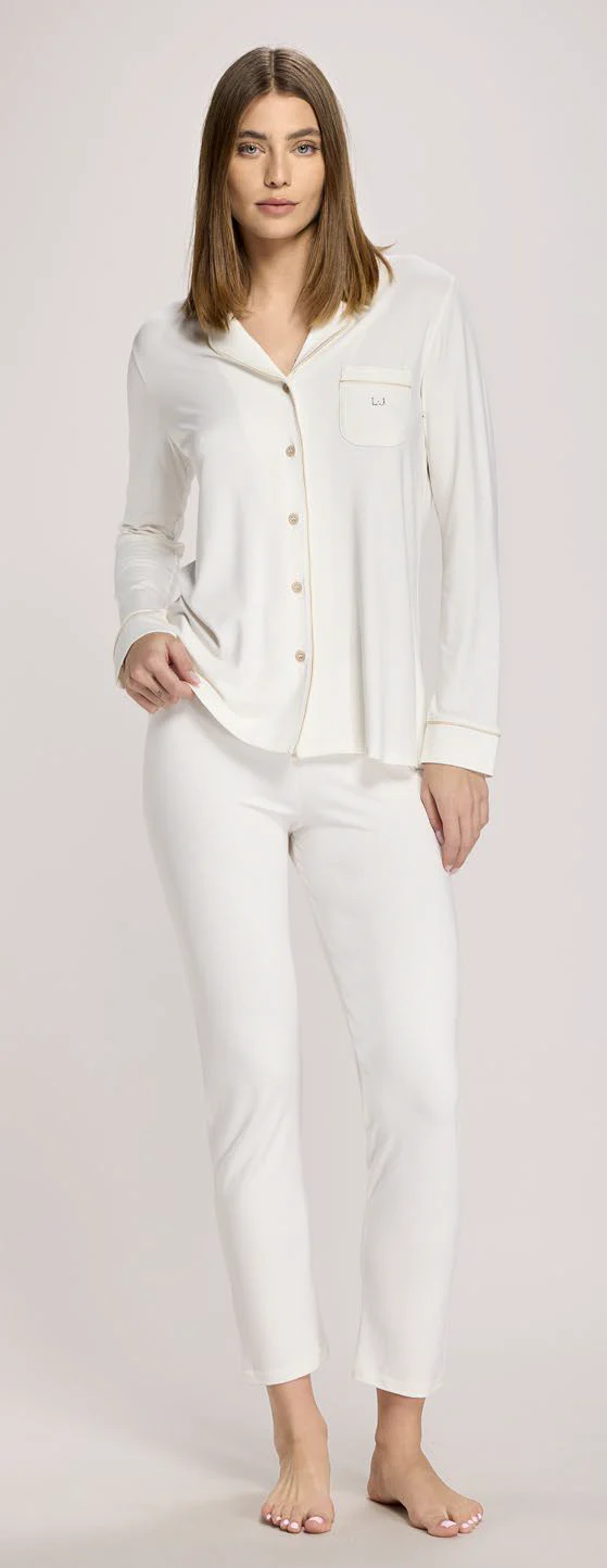 Pigiama da donna in Viscosa e interlock con maglietta taglio camicia e piping in contrasto di colore