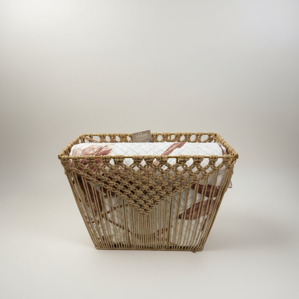 Cestino realizzato in ferro battuto e corda di poliestere.